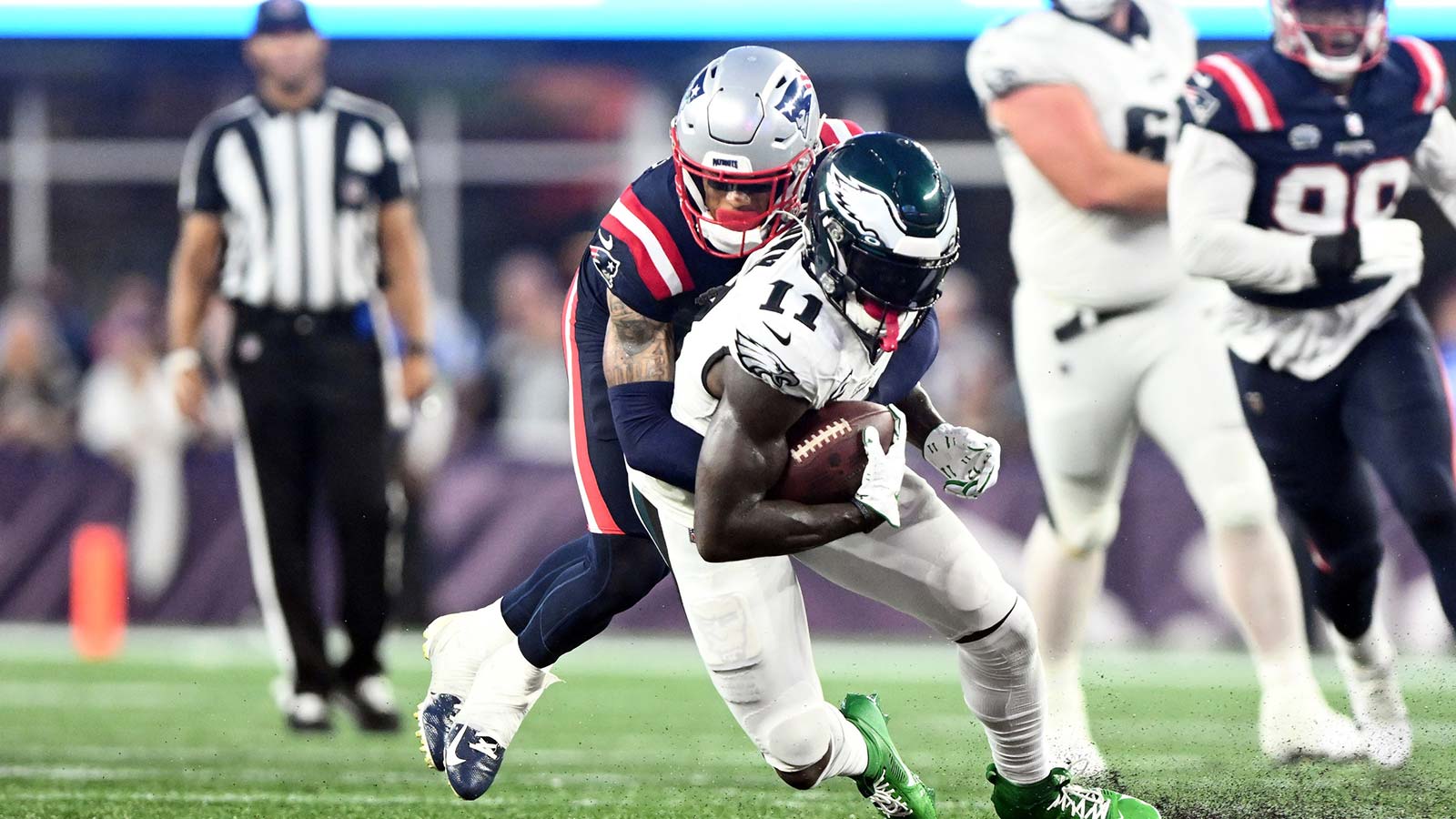 “And so both sides continue to give the story oxygen whenever they’re given the opportunity. It hasn’t gone away. It’s still sitting out there. It’ll be sitting out there for a while right now. I do not expect anything here in the next couple of weeks. But again, AJ Brown to the Patriots still remains a possibility.”