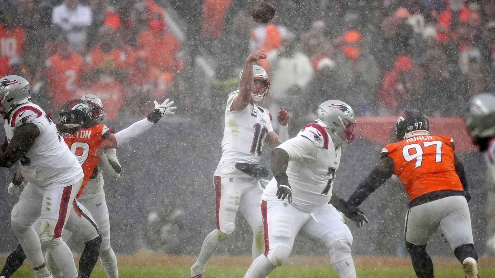 Maye needed to turn to his legs as the snow piled onto Empower Field at Mile High. Especially during a crucial sequence that sealed New England’s return to the big game.