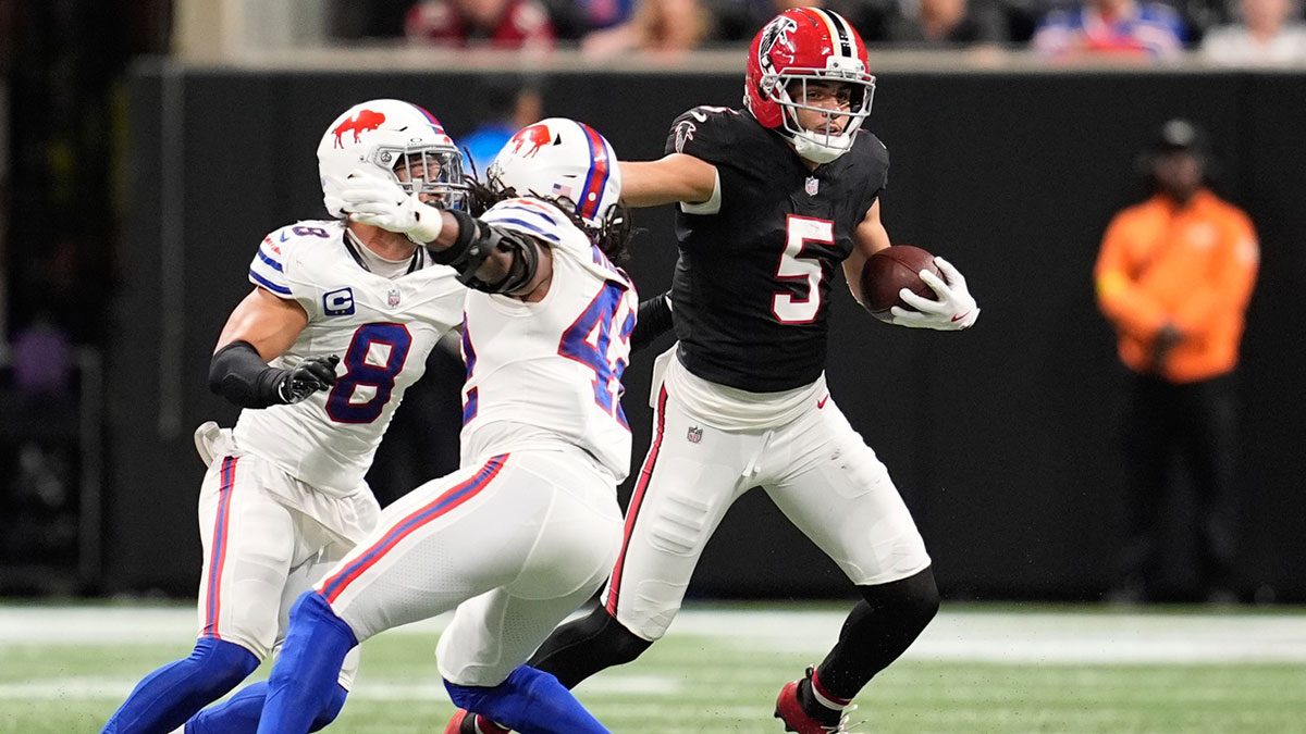 Drake London had it. Until he didn’t. The Atlanta Falcons had a strong start against the Buffalo Bills at Mercedes-Benz Stadium on Monday, holding a 14-point lead at halftime, 21-7.